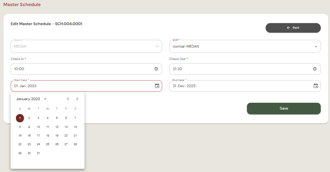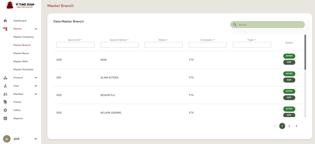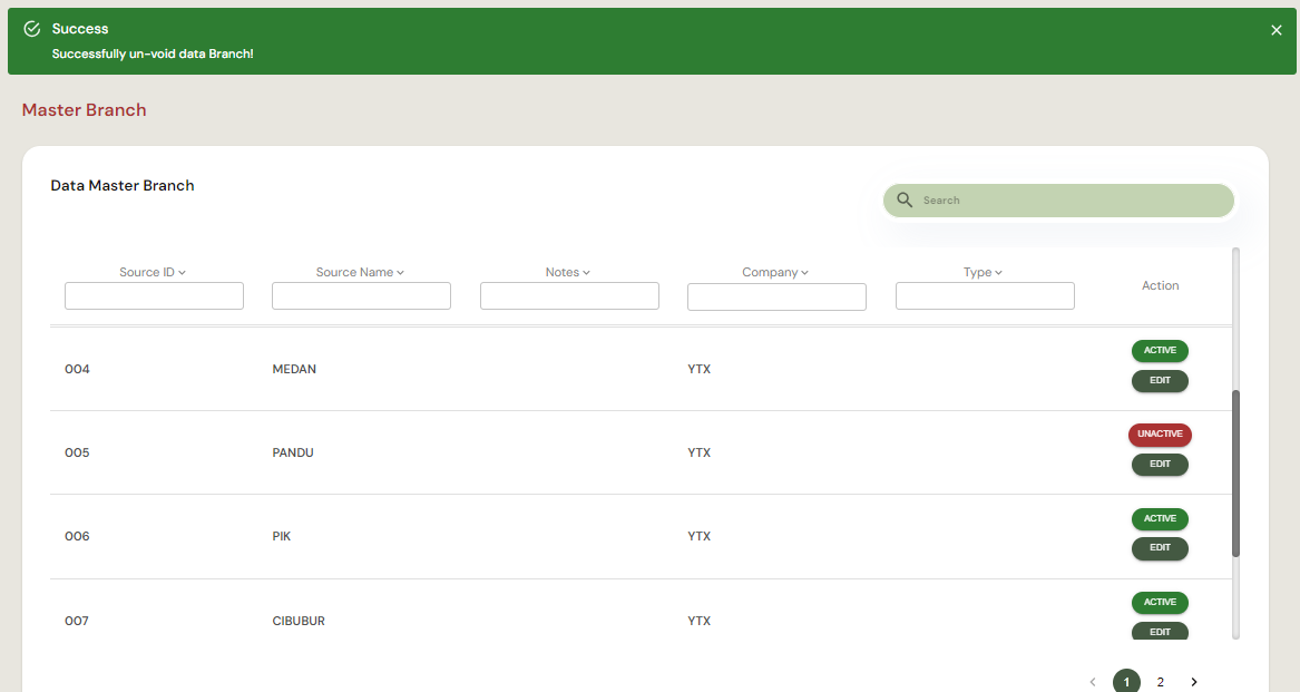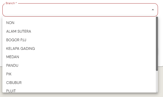 pilihan branch adalah data yang sudah diinputkan pada Modul Branch. Jika tidak ditemukan data branch yang dimaksud, maka input terlebih dahulu pada module Branch