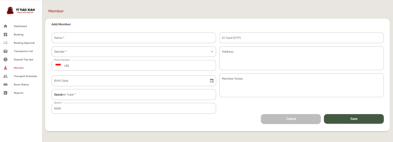 Tombol + Add Member di sebelah kanan atas digunakan untuk menambahkan anggota baru ke dalam sistem.