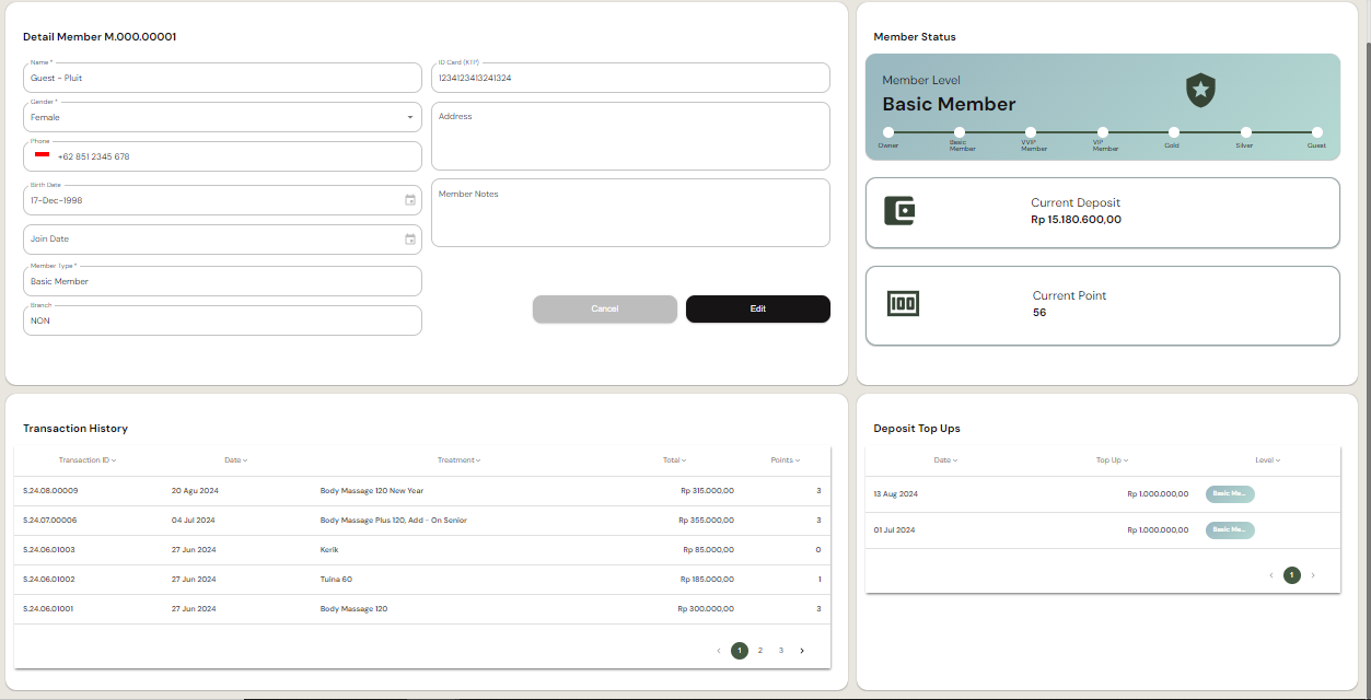 Member Level: Tingkat keanggotaan anggota (VIP Member, Guest).