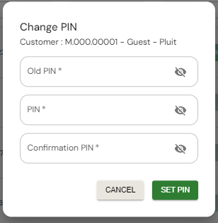 CHANGE PIN: Mengubah PIN anggota (tombol ini muncul jika anggota sudah memiliki PIN).